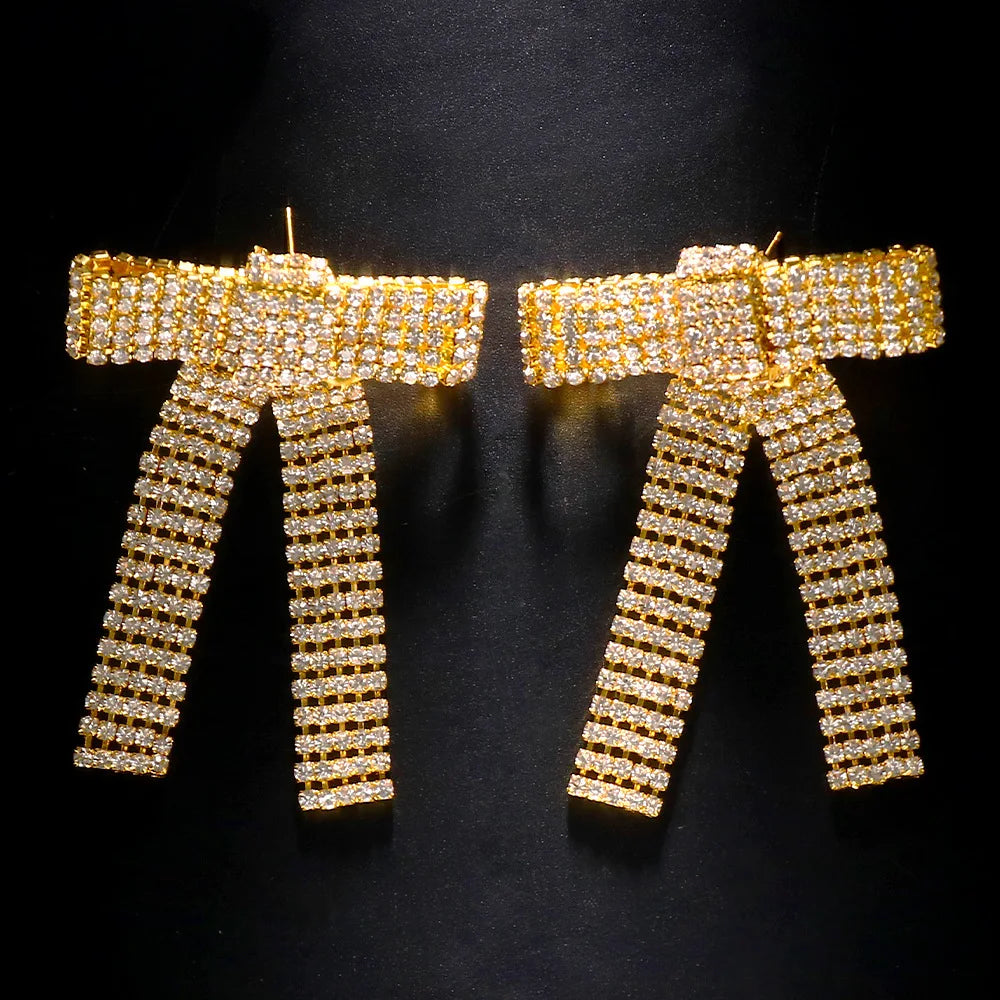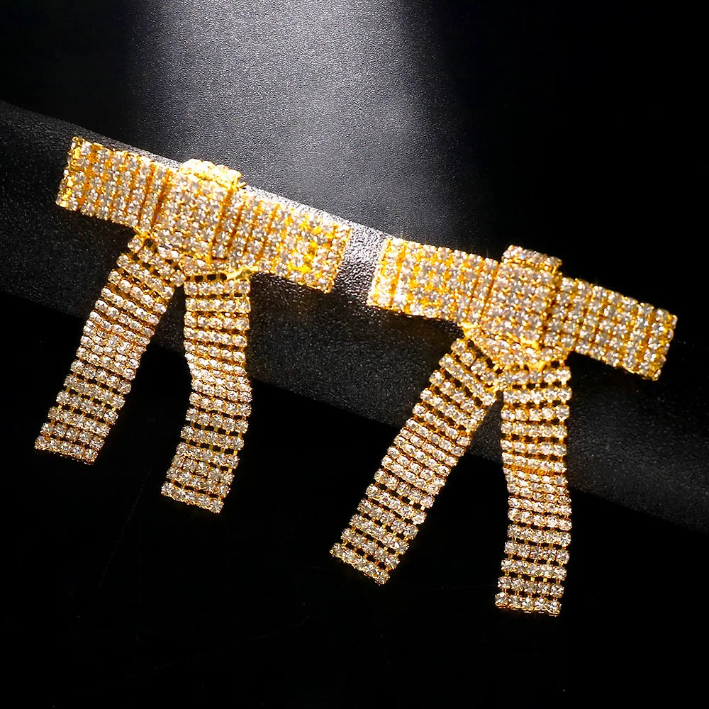 Bow Earrings Statement Ear Accessories Christmas Gift Charm Crystal Hanging Earrings Banquet Jewelry